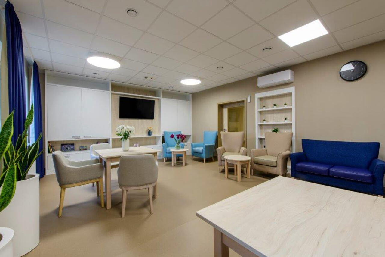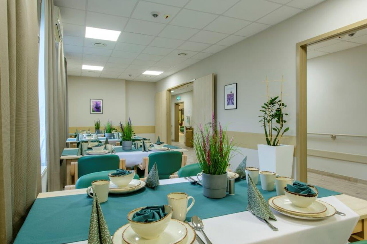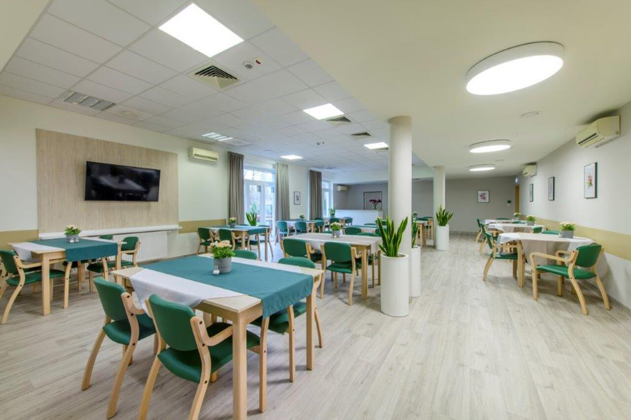 Tworzymy przyjazne miejsce do życia. Dokładamy wszelkich starań, by zapewnić mieszkańcom poczucie komfortu, w oparciu o wzajemny szacunek i zaufanie. Personel, wyspecjalizowany i z dużym doświadczeniem w pracy z osobami starszymi, dba by podopieczni czuli się u nas dobrze i bezpiecznie. Każdego dnia pracujemy nad utrzymaniem sprawności intelektualnej mieszkańców oraz powstrzymaniem zanikania nabytych umiejętności. Do każdego podchodzimy indywidualnie – już na początku pobytu nasi terapeuci dobierają odpowiednie aktywności i zajęcia usprawniające, by podopieczni jak najdłużej cieszyli się samodzielnością. Organizujemy uroczyste spotkania z okazji urodzin i świąt, podczas których tańczymy i śpiewamy, a także koncerty, przedstawienia oraz występy artystyczne. W połowie 2022 r. przeprowadziliśmy kompleksowy remont Rezydencji, wymieniając całkowicie wyposażenie pokoi i łazienek. Powstały też nowe, przytulne sale spotkań i biblioteka.